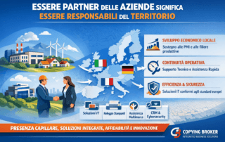 Essere Partner delle Aziende significa essere Responsabili del Territorio Essere partner delle imprese non significa solo fornire prodotti o servizi: significa assumersi una responsabilità concreta verso il territorio, contribuendo allo sviluppo economico locale e alla solidità delle filiere. La presenza capillare sul territorio garantisce alle aziende continuità operativa, affidabilità e accesso immediato a supporto tecnico [...]